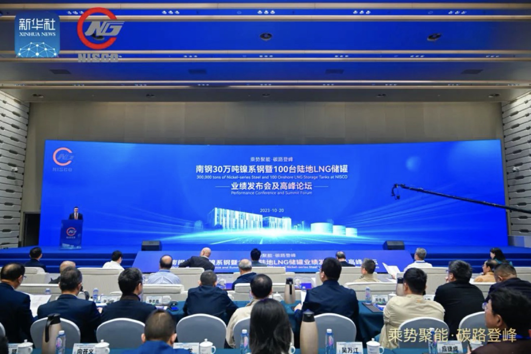 會議舉行了南鋼30萬噸Ni系鋼、100臺LNG陸地儲罐業績發布儀式。近年來,南鋼9Ni鋼產品以及低溫螺紋鋼及套筒,已用于建造了29座LNG接收站,包括14座國家重大工程、15個省市級重大工程和多個海外項目,總數超過100臺陸地LNG儲罐,南鋼Ni系鋼已經供貨超過30萬噸,所供鎳系鋼板首尾相連總長度達到1300余千米,與京滬高鐵總里程相近。這些項目的運營,可以大幅降低二氧化碳排放,助力全球溫室氣體減排。南鋼9Ni鋼獲得國家制造業單項冠軍產品、中國專利獎產品、國家工業強基項目產品、國家重點新產品等多項殊榮。南鋼是3.5Ni、5Ni、7Ni、9Ni等系列最全的生產企業,連續12年保持國內陸地、船上用鋼市場占有率第一;南鋼是率先實現Ni系鋼出口的鋼企;南鋼為全球最大VLEC船、全球最大容積陸地LNG儲罐等多個世界首臺套提供了Ni系鋼,實現了中國LNG產業從“跟跑”到“領跑”的轉變。南鋼還開發了世界首創的5Ni型鋼,填補了國際空白。除了傳統成熟產品之外,南鋼想用戶之所想,率先開發出第二代7Ni鋼、第三代高錳鋼等更具經濟優勢的產品,引領了低溫材料發展。