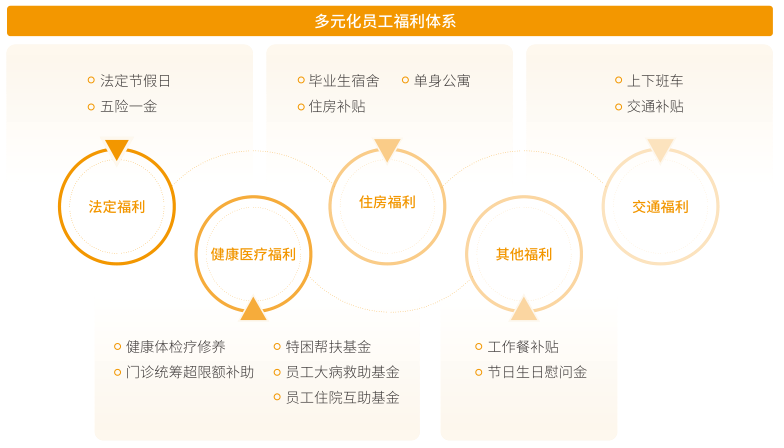 公司建立全面多元化的福利保障體系。除依照法律法規(guī)要求為員工繳納的法定五險一金外,我們還為員工提供包括補充醫(yī)療、住房保障、交通補貼、餐飲補貼等福利補貼。